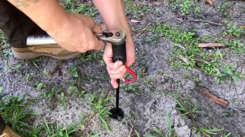 Set up is easy enough that one person can do it in about 30 to 35 minutes. There are 14 stakes for the tent and 14 for the guy lines. I’ve had the most success setting it up by my self by laying the tent out so the footprint is mostly in place, staking the back corners down, then staking the front entrance center guy line. Once those are in place the three fiberglass color coded poles are pushed though the sleeve then the ends are put over the metal pins connected to the tent body. Moving from back to front the tent will begin to stand up and stay in place.