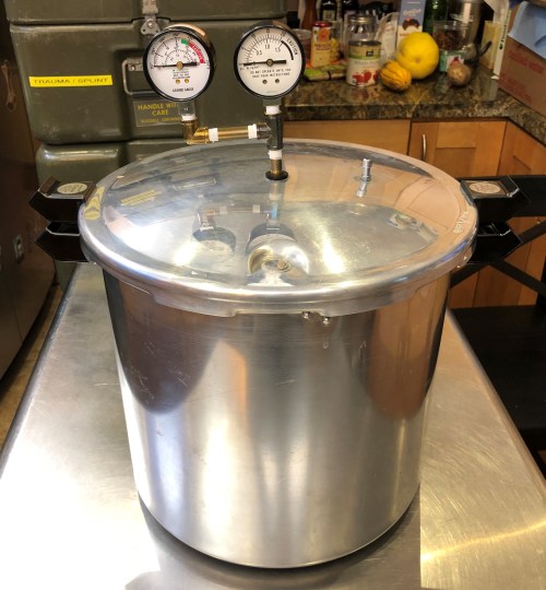 SOP’s also include when using a new heat source running at least 3 test to ensure consistent pressure throughout the cycle. We use indicator tape as well as test strips to indicate a cycle is successful. Project cost for the canner, replacement parts and parts for autoclave use was $170.13.